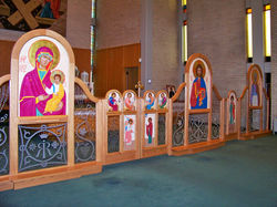We were able to maintain a level of transparency in the iconostasis by incorporating by incorporating sandblasted glass panels in the design so that both the clergy of the old tradition and the lay-people of the newer tradition were pleased with the design.